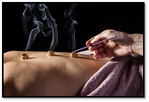 Moxibustion – it invovles the burning of moxa, a bundle of dried herb which can be used to heat the acupuncture needles or warm the skin.
